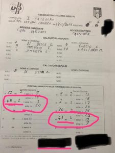 Rimaniamo sconcertati per gli articoli che sono usciti nella giornata odierna sui vari canali calcistici. Si allega il rapporto di fine gara sottoscritto dal signor Demetrio Andriani e per ragioni di privacy se ne oscura la firma.