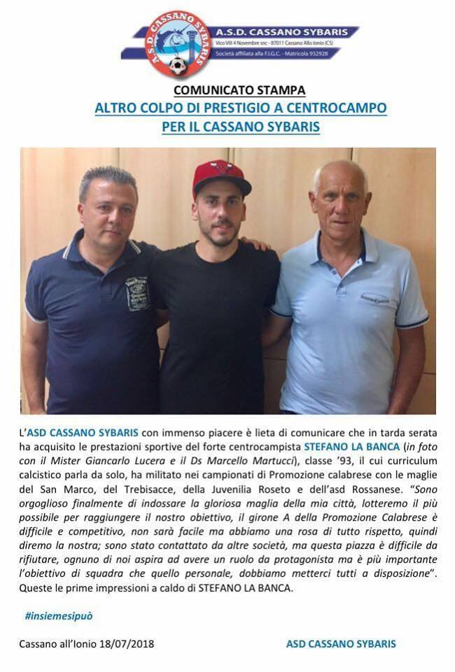Calcio Promozione Cassano Sybaris, firma anche La Banca Scritto da Massimo Scerbo Postato 19 Luglio 2018 48 second read 0 0 Condividi su Facebook Condividi su Twitter Condividi su Google+ Condividi su Reddit Condividi su Pinterest Condividi su Linkedin Condividi su Tumblr