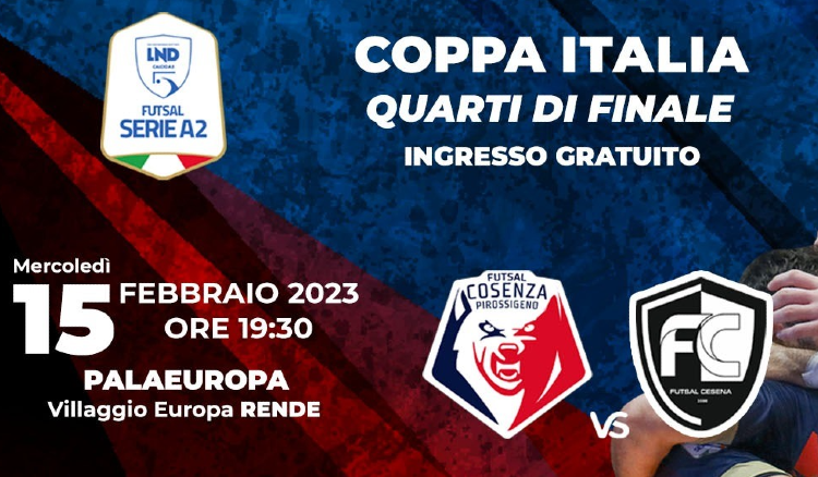 Si è disputata interamente ieri la 22ª giornata del Campionato di Serie A2 Girone C, che non ha visto impegnata la Pirossigeno Cosenza, ferma ai box per il turno di riposo. I lupi del futsal stanno preparando il ritorno in campo, fissato per mercoledì 15 febbraio, quando alle ore 19:30 riceveranno al PalaEuropa di Rende la visita della Futsal Cesena nella gara valevole per i quarti di finale di Coppa Italia. In palio c’è l’accesso alla Final Four della competizione tricolore.