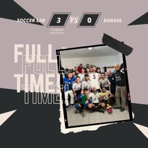 (Commento Soccer Lab) C’è profumo di storia oggi allo Sporting di Bocale, il Borgia indiscussa capolista del girone unico di Catanzaro, viene a fare visita alla Soccer Lab Academy, per giocarsi l’accesso alla finale di coppa Calabria. Un pomeriggio caldo, baciato dal sole ed una temperatura mite, hanno fatto da contorno ad una gara essenzialmente corretta, tra due compagini che hanno giocato a calcio a 5 affrontandosi a viso aperto senza esclusione di colpi.