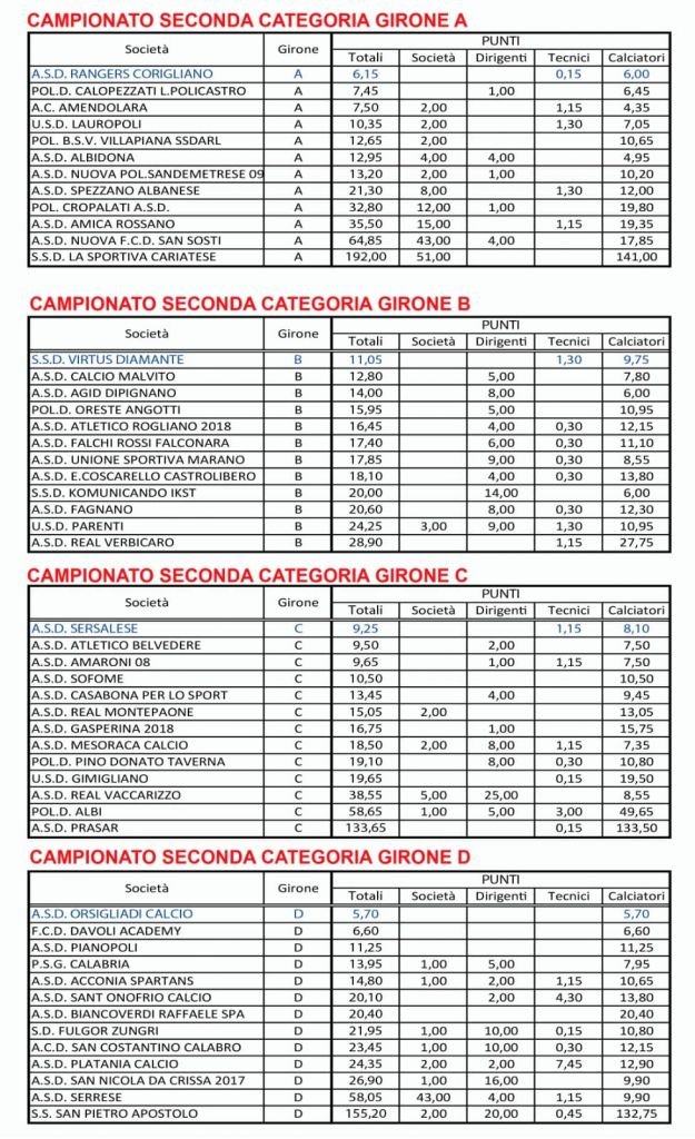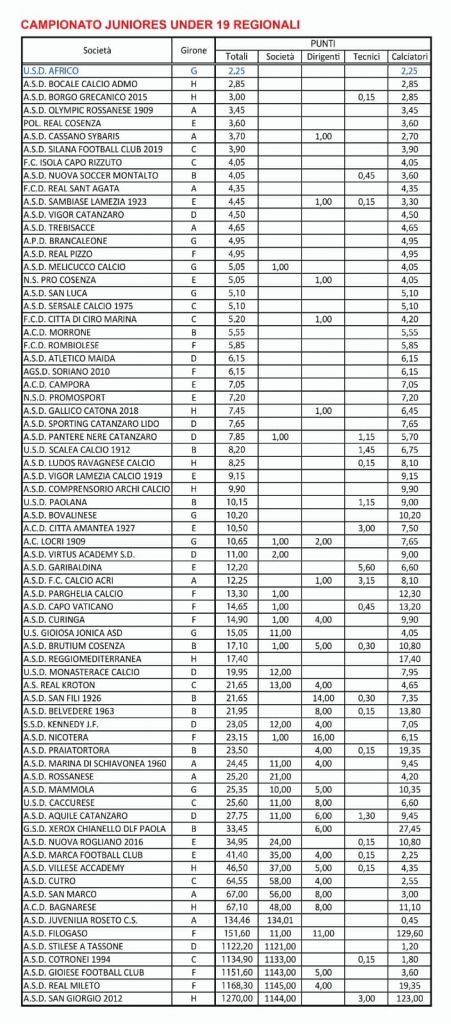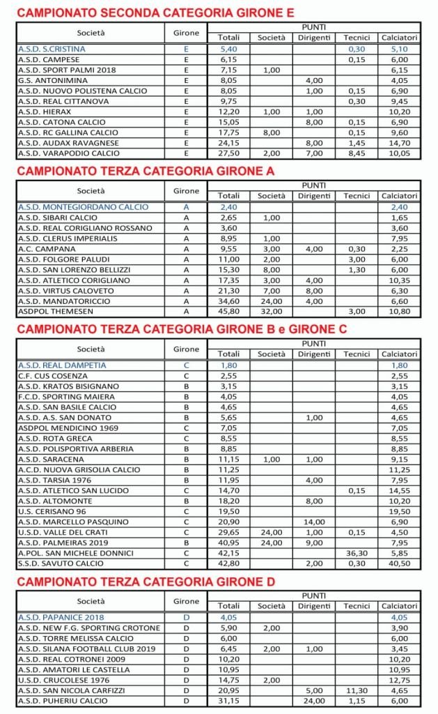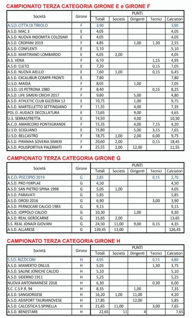 Lo stop dei campionati dilettantistici ha determinato anche le classifiche finali della Coppa Disciplina dal massimo campionato di eccellenza alla terza categoria. Andiamo a vedere nello specifico graduatorie e punteggi.