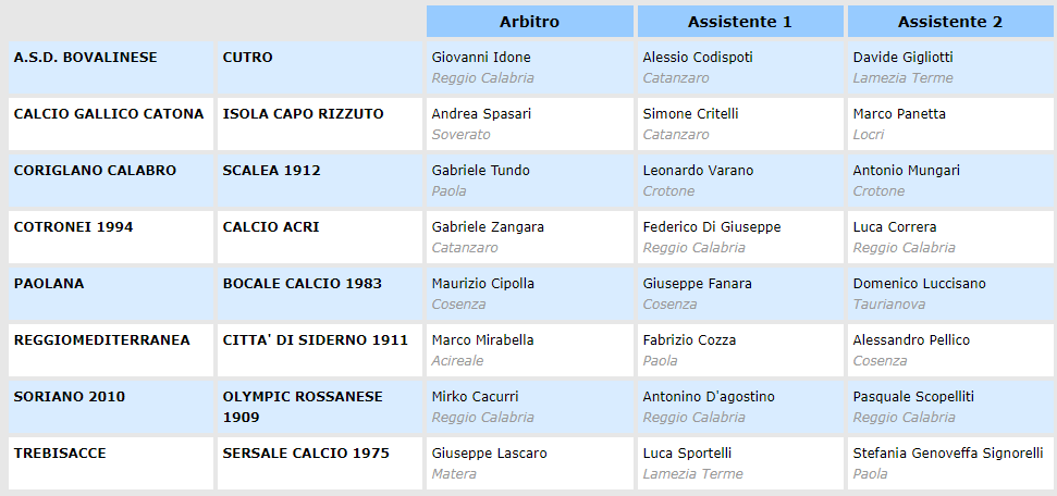 Big Match di giornata lo scontro tra Trebisacce e Sersale, i locali per continuare a sognare, Parentela per il primo successo. Sfide attese anche quelle di Paola e Bovalino, con gli uomini di Perrotta chiamati alla prima gioia tra le mura amiche, anche se un Laface ancora imbattuto vuole fare lo sgambetto ai Tirennici, per mantenere il passo positivo e per dimostrarsi ancora la rivelazione di questo avvio di stagione. Al “Lillo Cartisano”, invece, la Bovalinese avrà l’ulteriore motivazione del ritrovare il proprio stadio, però, non sarà facile battere il Cutro di Vanzetto, ancorato a quota zero. Da seguire anche Soriano – Olympic Rossanese, con entrambe in cerca di convinzioni e punti, i locali per salvare la traballante panchina di Saladino, gli ospiti per cancellare la sconfitta interna dello scorso turno e restare nelle zone alte. Chiude il programma Gallico Catona – Isola C.R., i reggini per dare continuità al colpo grosso di Cutro, gli uomini di Leone per eliminare le tossine negative dei precedenti sfortunati incontri, perché non basta più ricevere complimenti, bisogna fare risultato.
