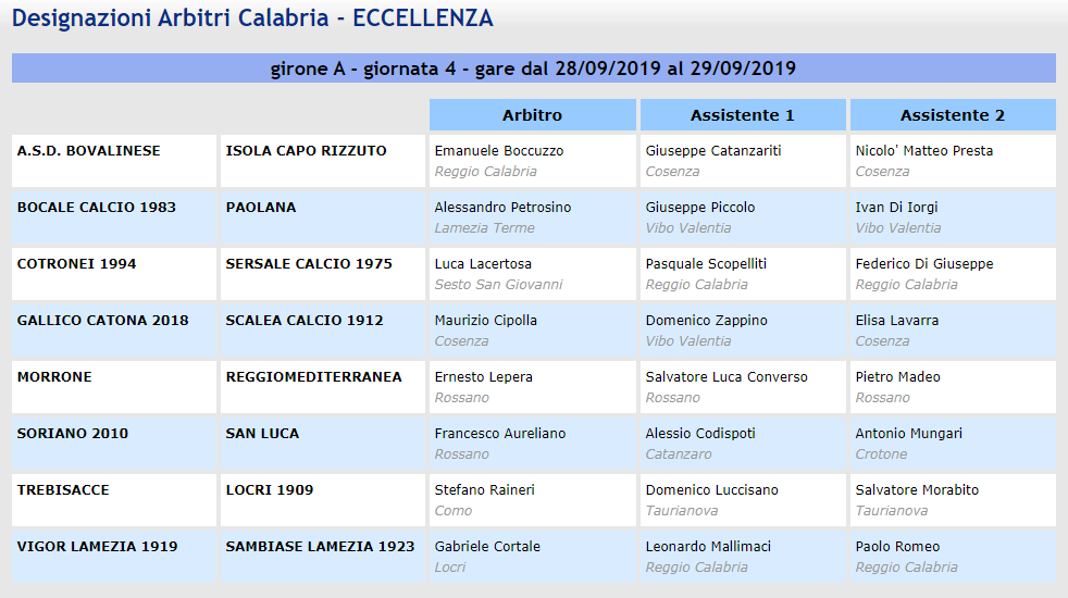 A cura di mister Girolamo Mesiti – Entra nel vivo già dalla quarta giornata di andata il massimo campionato regionale calabrese, proponendo scontri veramente interessanti dove spiccano Morrone – Reggiomediterranea ed il derby lametino Vigor Lamezia – Sambiase, dopo le polemiche del derby di coppa, subito sedate da ambedue le società con un comunicato congiunto, che sicuramente ha fatto piacere a tutto il movimento calcistico calabrese per tempestività e contenuti. Ritornando al calcio giocato, lo scontro tra Morrone e Reggiomediterranea mette di fronte due squadre con ambizioni e che non potranno permettersi altri passi falsi se vorranno recitare un campionato da “Grandi“. Le prime della classe Locri e San Luca saranno impegnate, entrambe in trasferta, contro due formazioni, Trebisacce e Soriano, che vorranno fare punti dopo il disastroso inizio di torneo e con il cambio di guida tecnica per il Soriano. Interessante anche il derby della Presila Cotronei – Sersale, due squadre in salute, che si daranno battaglia per conquistare posizioni in classifica. Il Gallico Catona ospiterà lo Scalea dopo l’ottima prestazione nel derby reggino di domenica scorsa, che ha sicuramente alzato il livello di autostima dei ragazzi di mister Condello. Il Bocale sicuramente non si aspettava un così brusco avvio di campionato e dovrà sfruttare il turno interno con la Paolana che, essendo squadra sbarazzina, va affrontata con tutte le cautele del caso. Chiudiamo con lo scontro tra la Bovalinese e l’Isola Capo Rizzuto, basta leggere gli organici e capire le ambizioni opposte di queste squadre, la Bovalinese squadra giovane e frizzante, l’Isola sorniona con cui tutte le squadre di vertice dovranno fare i conti.