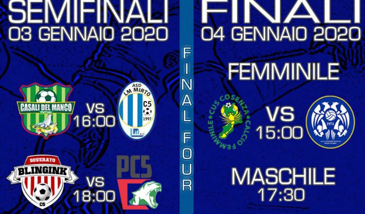 Come anticipato sulle nostre pagine durante le vacanze natalizie con vari articoli di avvicinamento alla manifestazione, venerdì 3 e sabato 4 Gennaio si assegna il primo trofeo stagionale del calcio a 5 regionale, la Coppa Italia. In campo, al Palazzetto dello Sport “Caduti sul lavoro” di Polistena, le quattro squadre maschili che si sono qualificate per l’evento, tutte militanti nel massimo campionato di serie C1; sabato la finale femminile, che farà da antipasto a quella maschile.