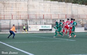 Avvio propositivo del Bocale che da subito mette pressione ai biancoverdi, i quali però arrivano per primi al tiro con Giovanni Foderaro, bravo Parisi ad alzare il pallone oltre la traversa. Tra il 9′ e il 15′ i biancorossi vanno vicinissimi al vantaggio: prima è capitan Secondi a girare di testa una punizione di Etevenaux, la palla picchia beffarda contro la traversa; poi tocca a Gatto impossessarsi di un pallone perso dal centrale De Nisi, puntare la porta e cercare l’angolo lontano, la sfera sfila accanto al palo per pochi centimetri; ci prova in solitaria Etevenaux con un destro teso dalla lunga distanza che quasi sorprende il portiere, sfera che sorvola la traversa. Al 22′ si fa male Gatto, il quale è costretto a lasciare il campo; mister Laface lancia Alessio Neri, classe 2002, collocandolo alto a sinistra. Entrambe le squadre attaccano con continuità in una partita con repentini capovolgimenti di fronte, anche se i portieri restano a guardare per gran parte del tempo grazie a difese molto attente.