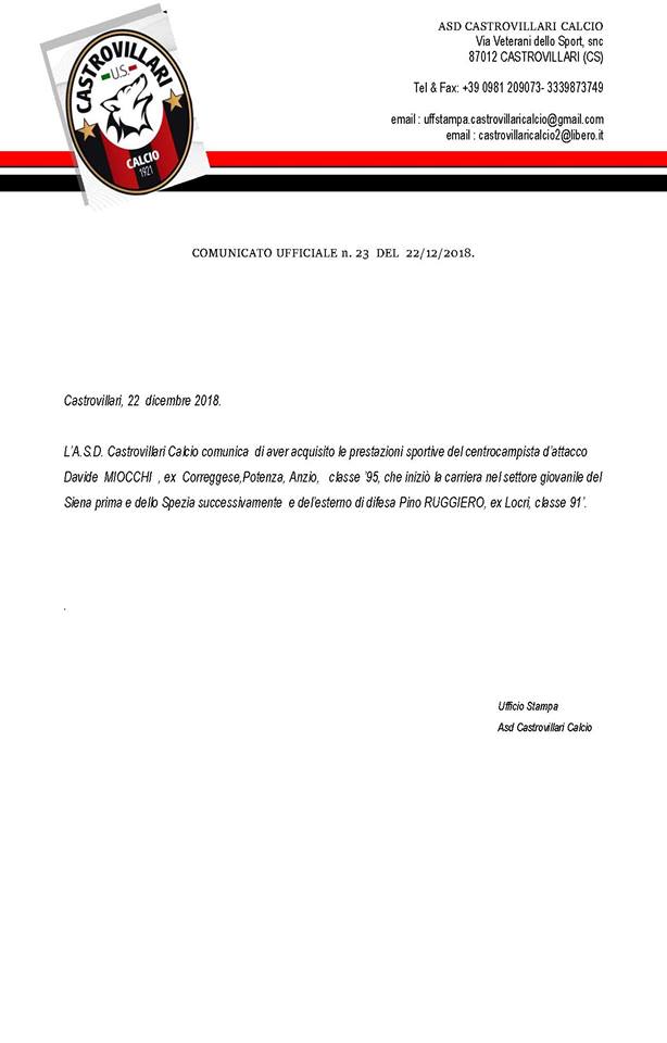Calcio Serie D Il Castrovillari annuncia Miocchi e Ruggiero Scritto da Massimo Scerbo Postato 23 Dicembre 2018 42 second read 0 0 Condividi su Facebook Condividi su Twitter Condividi su Google+ Condividi su Reddit Condividi su Pinterest Condividi su Linkedin Condividi su Tumblr