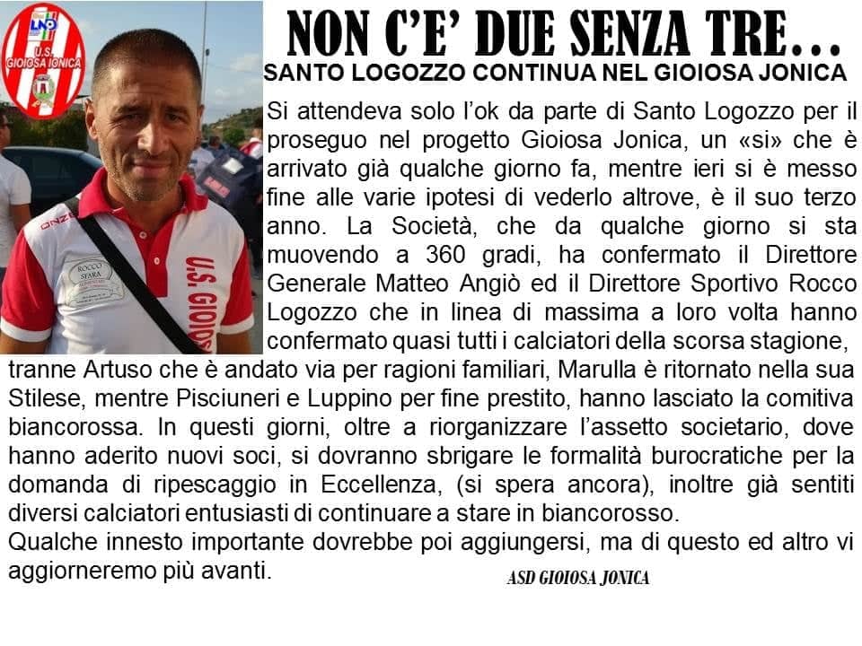 Calcio Promozione Il Gioiosa Ionica e mister Logozzo ancora insieme Scritto da Redazione Calabriadilettanti.it Postato 18 Luglio 2020 45 second read 0 0 Condividi su Facebook Condividi su Twitter Condividi su Google+ Condividi su Reddit Condividi su Pinterest Condividi su Linkedin Condividi su Tumblr