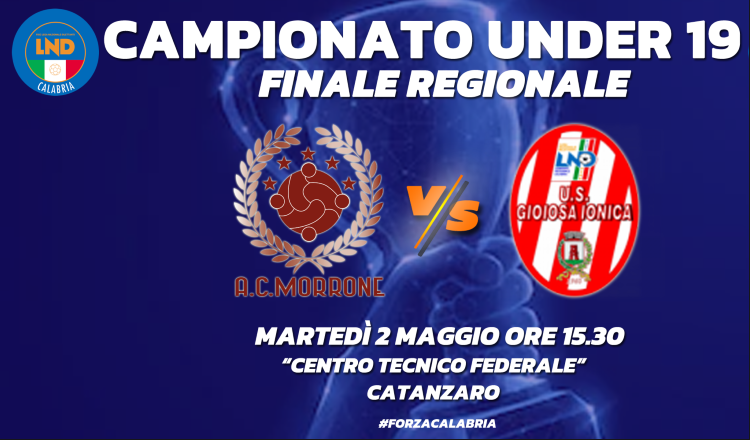 Saranno Morrone e Gioiosa Jonica a contendersi il titolo di campione regionale del campionato Under 19. Martedì 2 maggio, con calcio d’inizio alle ore 15.30, sul campo del “Centro Tecnico Federale” di Catanzaro, i cosentini tentano il tris dopo il successo del 1990/1991 (3-1 al Locri) e della scorsa stagione (3-0 al Gallico Catona), mentre si tratta di una prima assoluta per la compagine della provincia di Reggio Calabria. Le due squadre hanno raggiunto la finale dopo un percorso lungo e faticoso che ha portato entrambe a misurarsi con avversari forti e temibili, ma la sfida finale si preannuncia ancora una volta spettacolare ed all’ultimo respiro. Ovviamente, come da regolamento, in caso di parità al termine dei tempi regolamentari, verranno effettuati due tempi supplementari di quindici minuti ciascuno e, in caso di ulteriore parità, la vincente verrà decretata attraverso l’effettuazione dei calci di rigore. Terna tutta al femminile, arbitro dell’incontro la signora Margherita Pittella della sezione di Crotone, coadiuvato dagli assistenti, signora Elisa Lavarra della sezione di Cosenza e signora Aurora Morabito della sezione di Reggio Calabria.