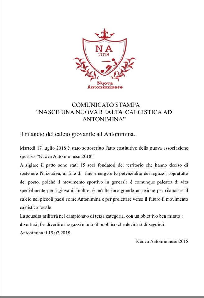 Calcio Terza Categoria Nasce la Nuova Antoniminese 2018 Scritto da Massimo Scerbo Postato 1 Ottobre 2018 45 second read 0 0 Condividi su Facebook Condividi su Twitter Condividi su Google+ Condividi su Reddit Condividi su Pinterest Condividi su Linkedin Condividi su Tumblr