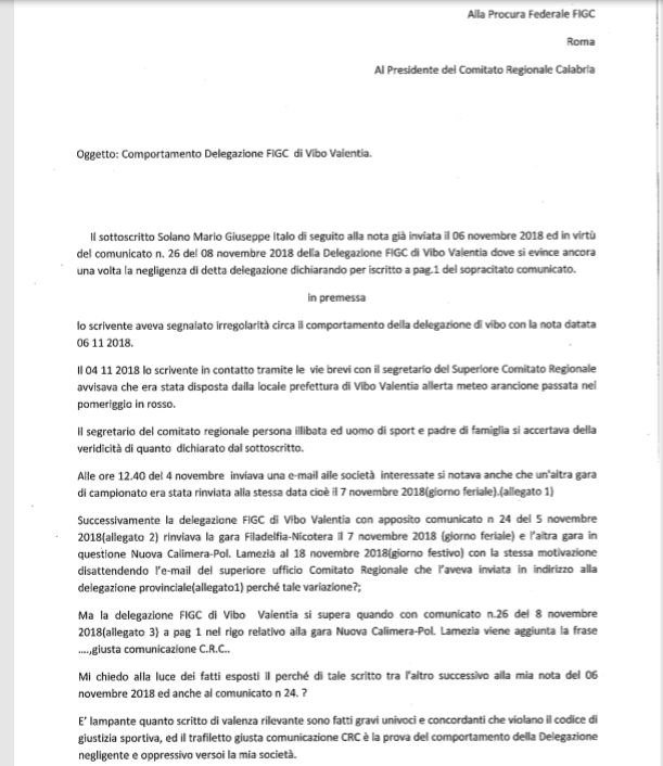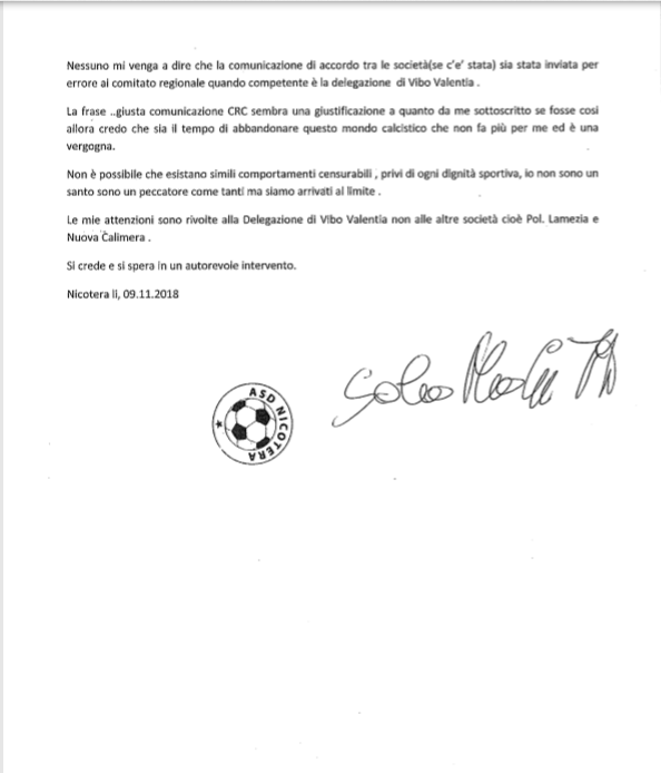 Home Calcio Nicotera, nota ufficiale del presidente Solano
