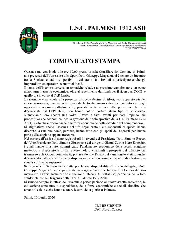 Palmese, nessuna novità sostanziale dalla riunione di ieri