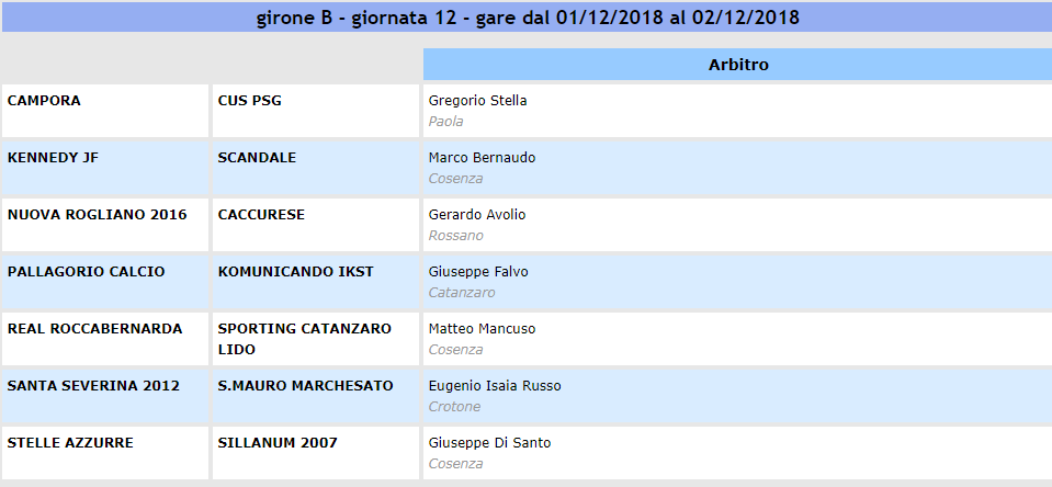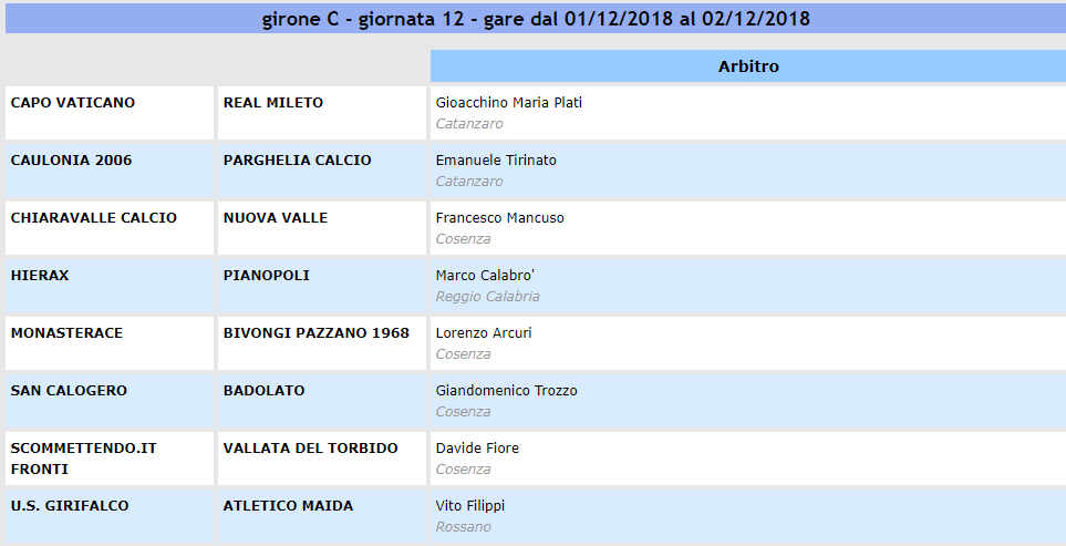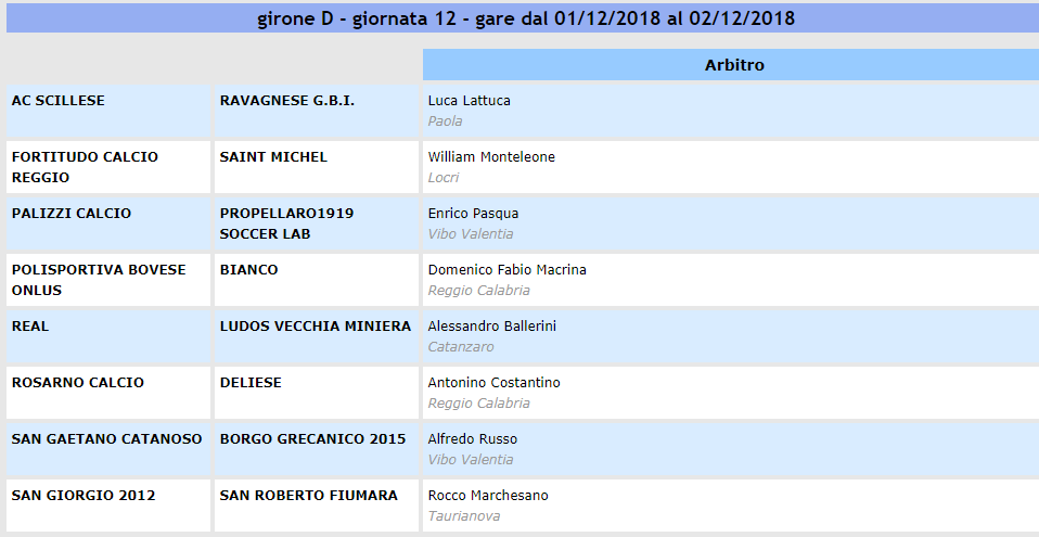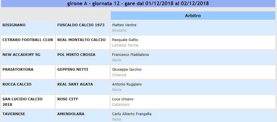 Prima Categoria, designazioni arbitrali della 12° giornata