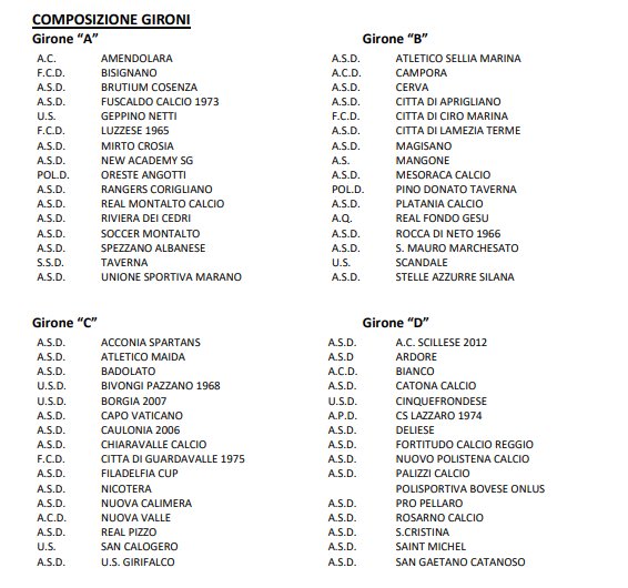 Con il Comunicato Ufficiale n. 17 il CR Calabria ha ufficializzato l’organico ed i gironi del campionato di Prima Categoria.