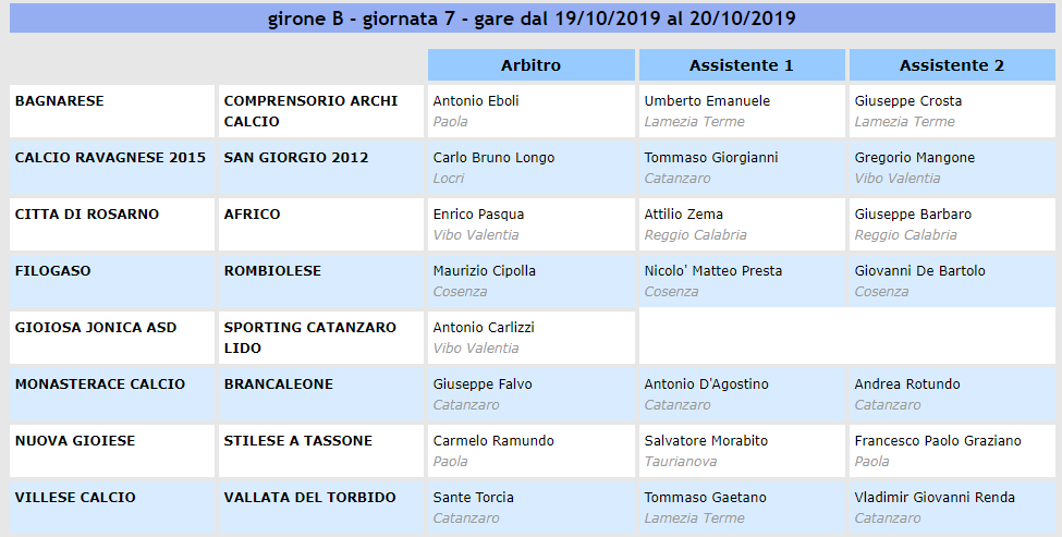 La settima giornata del girone B di promozione vedrà tre anticipi al sabato. LUDOS RAVAGNESE-SAN GIORGIO vedrà uno scontro equilibrato tra due neopromosse che non conoscono mezze misure avendo sempre finora vinto o perso, che non sia la volta buona per il primo segno x per entrambe. Un BRANCALEONE ferito (uscito malconcio dallo scontro al vertice del turno scorso contro la Stilese) non potrà sbagliare nuovamente, facendo visita al MONASTERACE, che non sta trovando ancora pace ed alla prima vittoria in campionato, rimandata anche domenica scorsa in casa, in una partita sulla carta abbordabile contro la VILLESE che, anche se ultima in classifica, sembra invece lanciare segnali positivi nelle ultime uscite e che, anche se si troverà di fronte una corazzata come il MAMMOLA, potrà affrontarla con meno paura, considerato che sul proprio campo ha già fermato una compagine molto forte e di pari valore come il GIOIOSA, i favori del pronostico vanno comunque agli ospiti. Nelle partite domenicali, il FILOGASO ha ottime possibilità di continuare a sognare contro la ROMBIOLESE tra le mura amiche e proseguire la scia di risultati positivi che ha permesso agli uomini di mister Marasco di posizionarsi da soli alle spalle del primo posto. La BAGNARESE ospiterà l’ARCHI con i favori del pronostico dopo questo brillante avvio di stagione, con gli ospiti che non conoscono vittoria dalla prima giornata. Pronostico che fino a qualche settimana fa sarebbe stato scontato per la partita che vedrà la GIOIESE ospitare la straripante STILESE (miglior attacco e miglior difesa) ma, che alla luce delle recenti ottime prestazioni dei padroni di casa, lascia un lumicino di speranza per l’equilibrio. Il GIOIOSA ha una buona occasione ed i favori del pronostico in casa per tornare alla vittoria contro lo SPORTING CZ LIDO che sta comunque ben figurando nelle ultime partite, ma in trasferta non ha ancora raccolto nulla. MELICUCCO-AFRICO, con i padroni di casa che hanno registrato le dimissioni del tecnico Megna, chiude il quadro della giornata in una partita dove sembrerebbe regnare l’equilibrio, con i padroni di casa leggermente favoriti.
