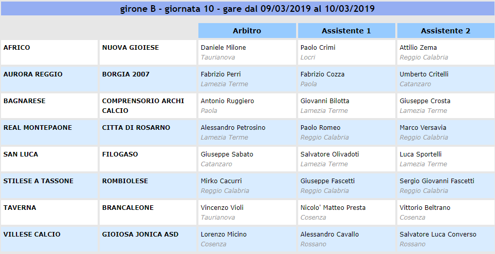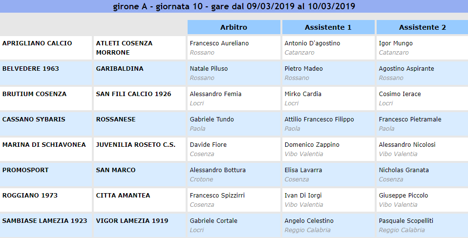 Il San Luca cerca i tre punti che vorrebbero dire aritmetica vittoria del campionato, tuttavia, il Filogaso non sarà certamente una vittima sacrificale. Discorsi simili tra Taverna-Brancaleone e Bagnarese-Archi: fattore “B” per restare aggrappate al treno play off, biancorossi per mantenere il vantaggio sugli architani, il pareggio sarebbe inutile per tutti. Compito agevole per la Stilese, vista la situazione tranquilla della Rombiolese, mentre, sarà più duro quello del Gioiosa Jonica, sul campo della Villese. Ultima chiamata contro il Real Montepaone, invece, per il Città di Rosarno, considerando l’attuale sesto posto e gli otto punti dalla seconda, un mancato successo potrebbe essere fatale. Chiudono il programma Africo-Gioiese, sfida tra due compagini serene ed Aurora Reggio-Borgia, con i catanzaresi pronti a raccogliere un bonus per sperare ancora.