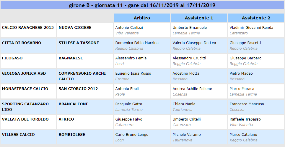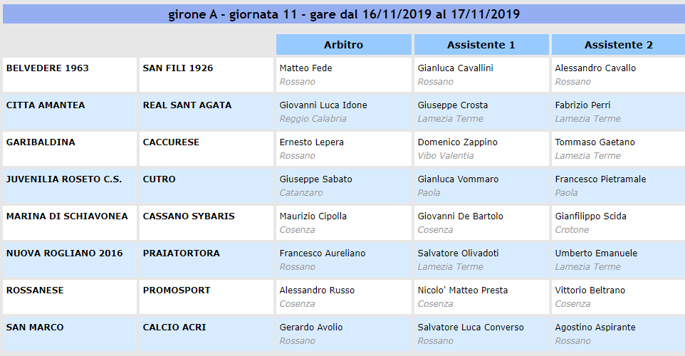 L’undicesimo turno del girone A sembrerebbe poter favorire, sulla carta, le squadre che stanno attualmente lottando per le posizioni di vertice, ma le insidie sono sempre dietro l’angolo e, come spesso succese, le sorprese possono essere all’ordine del giorno. I due anticipi del sabato vedranno impegnati Marina di Schiavonea e Cassano Siybaris in un derby salvezze che si preannuncia infuocato, per l’importanza della posta in palio, con le due squadre che non stanno vivendo un buon momento e proveranno a centrare un risultato pieno per dare respiro ad una classifica deficitaria. A Rogliano, la squadra di mister Aceto proverà a dare continuità di risultati per scalare ulteriori posizioni, ma avrà al cospetto un Praia Tortora protagonista del campionato e rinfrancato dopo il pokerissimo inflitto al San Marco nell’ultimo turno. La capolista Belvedere scenderà in campo domenica, ospitando la sorpresa San Fili. Gara interessante, che stuzzica la curiosità degli addetti ai lavori, con le due contendenti che non hanno nulla da perdere e potranno giocare senza alcun timore reverenziale. La Rossanese, all’inseguimento della vetta, ospita la Promosport e farà di tutto per proseguire il filotto di vittorie, l’obiettivo è chiaro e non c’è nemmeno bisogno di sottolinearlo. Di contro, la squadra lametina non può sbagliare nessuna gara, per via dei risultati a singhiozzo che ha collezionato, e dovrà andare oltre le proprie possibilità per strappare qualche punto. Caccurese e Acri, due società che in settimana hanno fatto valere le proprie ragioni con due comunicati di protesta, avranno il compito di tornare a casa dalle rispettive trasferte in casa di Garibaldina e San Marco, provando a dimenticare tutte le parole del turno precedente, ma dovranno stare attente a non capitolare, l’avversario di turno sarà certamente affamato e assetato di vittoria. Una sfida che potrebbe dare indicazioni sul prosieguo del campionato di ambedue le rivali è Amantea-Real Sant’Agata, due squadre apparentemente tranquille, ma proveranno a togliersi qualche soddisfazione in più durante il cammino. Chiude il programma l’incontro di Roseto Capo Spulico, dove una Juvenilia in salute ospiterà il fanalino di coda Cutro che, nonostante il cambio in panchina, pare mestamente destinato ai bassifondi della graduatoria, mercato di dicembre permettendo.