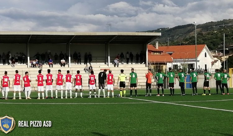 Squadra ospite che, nelle battute iniziali, sembra avere una marcia in più, dato il vigore con il quale inizia la gara. Al 9’ infatti si porta in vantaggio, Nesci calcia una punizione direttamente in porta dai 35 metri e la palla si infila all’incrocio. Nei minuti successivi alla prima rete, il gioco risulta spezzettato, interrotto diverse volte dal direttore di gara nel sanzionare alcuni falli. Anche dopo il vantaggio acquisito, il Parghelia non riesce ad imporsi sul campo da gioco, perché di fronte si trova una Real Pizzo ben organizzata soprattutto in difesa e non abbattuta per lo svantaggio. Pian piano la squadra di casa riesce a salire in cattedra, complice un ritmo abbassato degli avversari, tra le tante azioni create, la più nitida è quella che parte dal tiro del numero 8, Calafato. Il pareggio siglato Real Pizzo arriva al 34’ ancora a segno capitan Liotti, il quale sfrutta intelligentemente di testa, il calcio piazzato calciato da Colloca che lo serve con un lob. Al 41’ la Real Pizzo si porta in vantaggio con Akimboboye. Rete che nasce dagli sviluppi di un corner dalla sinistra, il pallone attraversa tutta l’area dove trova il difensore che calcia al volo di destro.