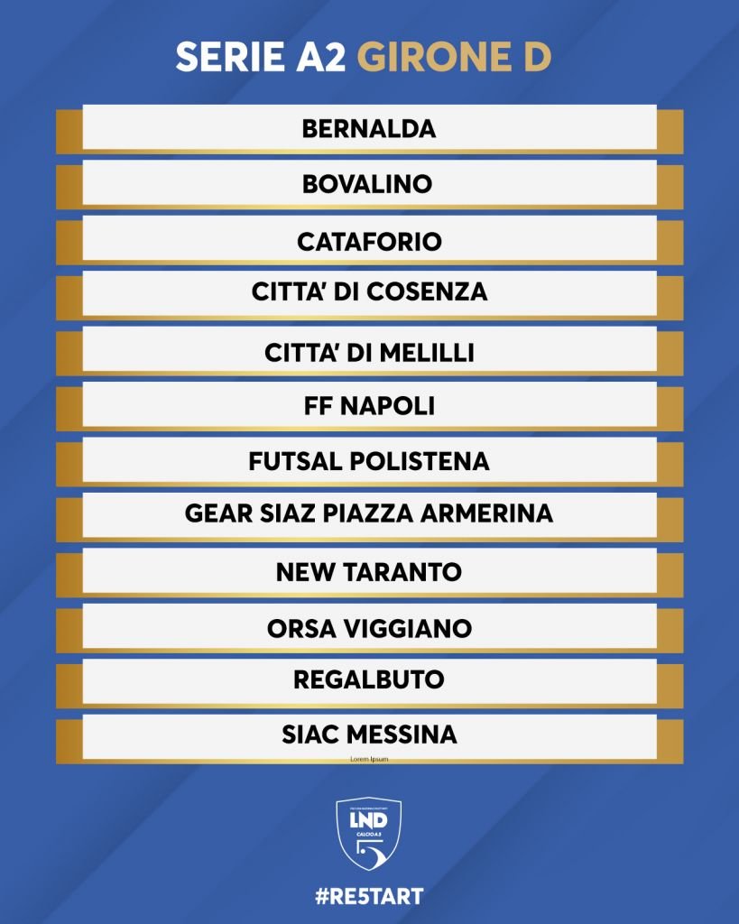 Il Consiglio Direttivo della Divisione Calcio a 5 ha scelto di rimodulare gli organici dei seguenti gironi: Serie A2 Girone A, Girone C e Girone D; Serie B Girone G, Serie B Girone H.