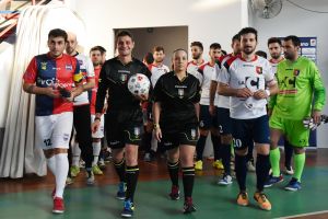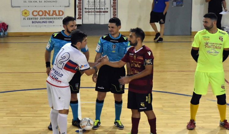 Oggi a Polistena si aspettava un “big match” e i tanti presenti non hanno visto deluse le loro aspettative. Finisce 6 a 3 per il Polistena contro un Bovalino mai domo che, nonostante il risultato possa far intendere una partita a senso unico, sino all’ ultimo minuto ha saputo ribattere colpo su colpo alla squadra di casa. Il pubblico del Palazzetto è quello delle grandi occasioni con oltre 700 presenze, facendo così da cornice ad una partita molto intensa vista l’importanza della posta in palio. Il Polistena C5 passa in vantaggio al terzo minuto grazie ad Antonio Cosoleto che si fa servire in diagonale e di sinistro batte Aquilino; dopo 5 minuti è ancora Cosoleto a rendersi pericoloso ma il portiere amaranto e bravo a toccare la palla quanto basta per farla sbattere sul palo interno. La rete del raddoppio arriva al 24° grazie a Politanò che si fa trovare sul secondo palo su assist di Giovinazzo (oggi migliore in campo tra i suoi). Al minuto 29 il Bovalino C5 dimezza lo svantaggio con Maza portando la propria squadra negli spogliatoi sotto di un gol. Al 40’ Giovinazzo sigla il 3 a 1 ma un minuto più tardi il Bovalino si fa di nuovo sotto e accorcia le distanze con un potente sinistro ancora di Maza. Al 52°, nel miglior momento degli uomini di Venanzi, è però il Polistena ad allungare ed è di nuovo Giovinazzo che conclude a rete una azione magistrale; nei minuti finali il Bovalino continua a mettere pressione agli uomini di casa con la carta del portiere di movimento e Sarica trova il varco giusto, portando di nuovo la propria squadra ad una sola lunghezza. Ma negli ultimi 2 minuti un eurogoal del solito Giovinazzo ed una ripartenza di Politanò chiudono definitivamente il big match sul risultato di 6 a 3, mandando in estasi il grandissimo pubblico di casa. (A.S. Polistena C5)