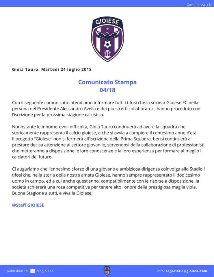 Calcio Promozione Sospiro di sollievo Gioiese, viola regolarmente iscritti Scritto da Massimo Scerbo Postato 25 Luglio 2018 48 second read 0 0 Condividi su Facebook Condividi su Twitter Condividi su Google+ Condividi su Reddit Condividi su Pinterest Condividi su Linkedin Condividi su Tumblr