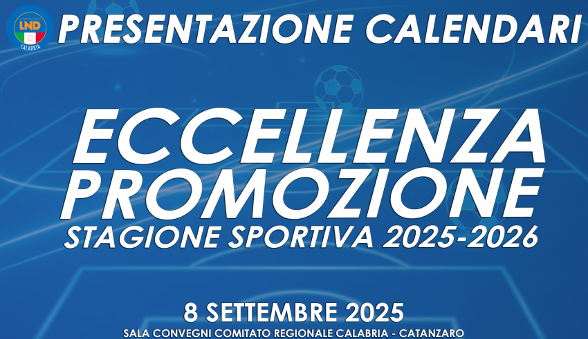 Si è svolta, come di consueto nella Sala Convegni del Comitato Regionale Calabria di via Contessa Clemenza a Catanzaro, la presentazione dei calendari dei campionati regionali di Eccellenza e Promozione nella kermesse che inaugura una nuova ed appassionante stagione sportiva, quella 2025/2026, che ha già preso il via con le gare del primo turno della fase regionale di Coppa Italia …